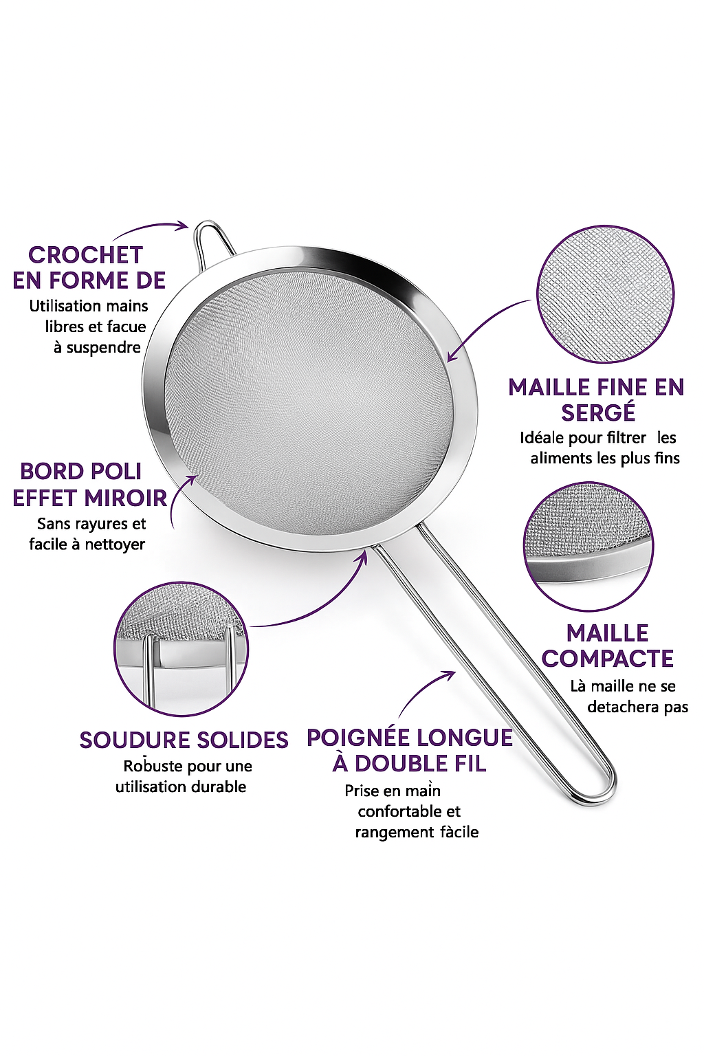 Obtenez une poudre fine et homogène en un geste. Ce tamis robuste et élégant assure une préparation sans grumeaux pour révéler toute la saveur de l’ube et du matcha.